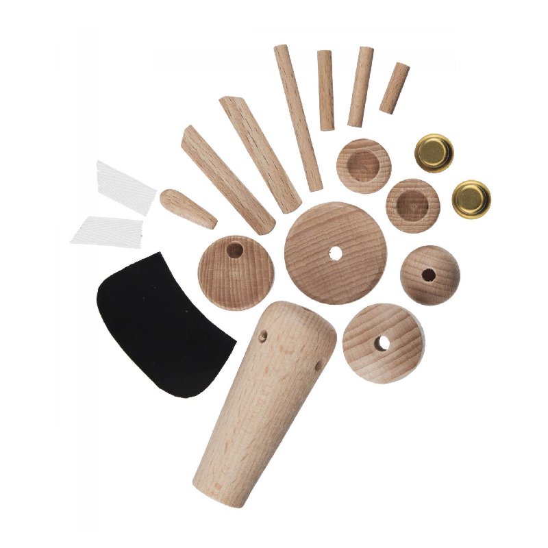 Das Basismaterial für die Bastelsets ist das Naturprodukt Holz. Die Teile sind so gefertigt, dass sich die Sets leicht und passgenau zusammen bauen lassen. Die meisten fertig gebastelten Sets lassen sich mit Wasserfarben, Acrylfarben, Filz- oder Wachsmalstiften noch weiter verschönern.