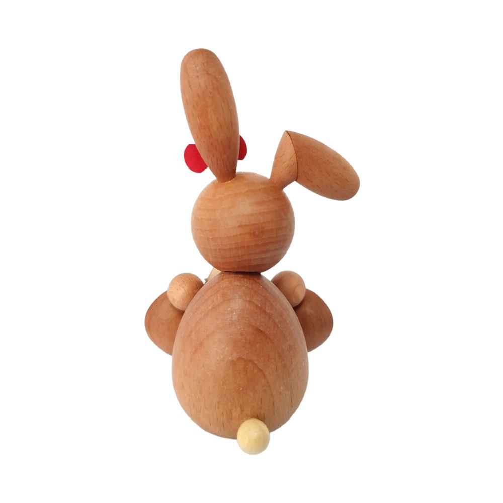 Ihr freundliches Gesicht mit den weißen Hasenzähnen und dicken Backen machen diese Figur zu einem fröhlichen Highlight in jeder Osterdekoration sowie auf jeder Ostertafel.