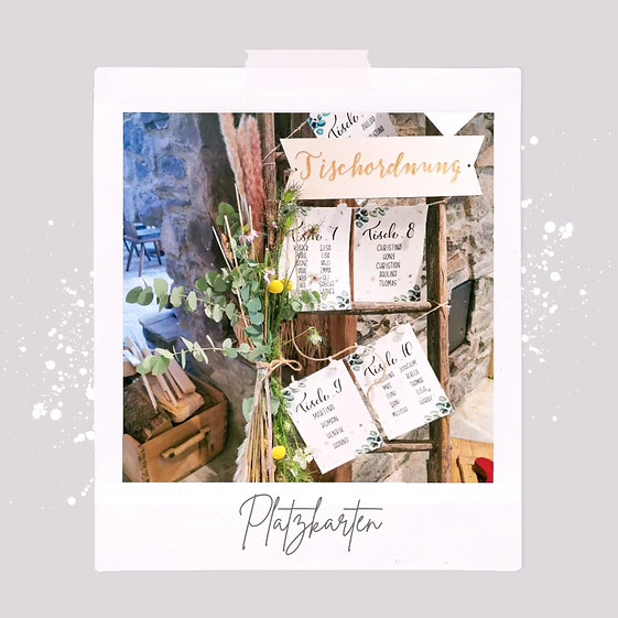 Gerne werden Einladungen, Tischkarten, Platzkarten, Tagesablauft, Menükarten etc. nach euren Wünschen designed.